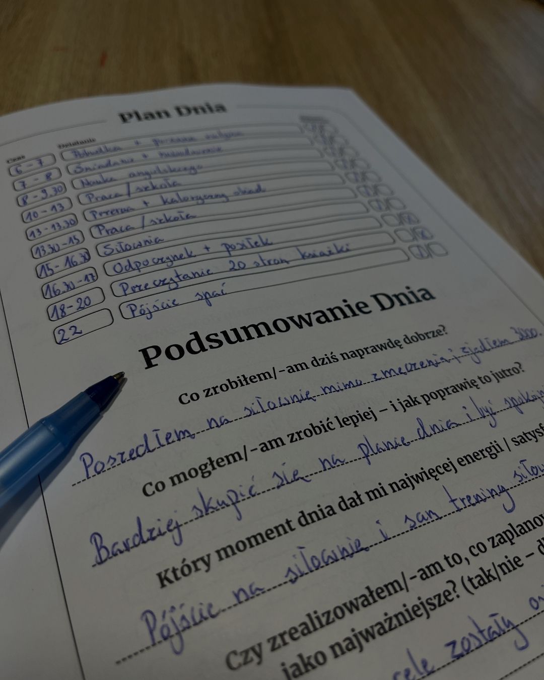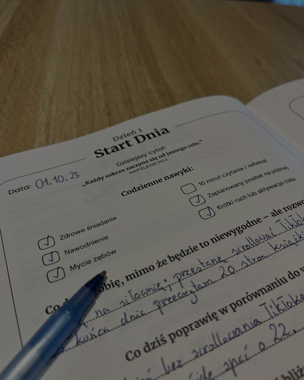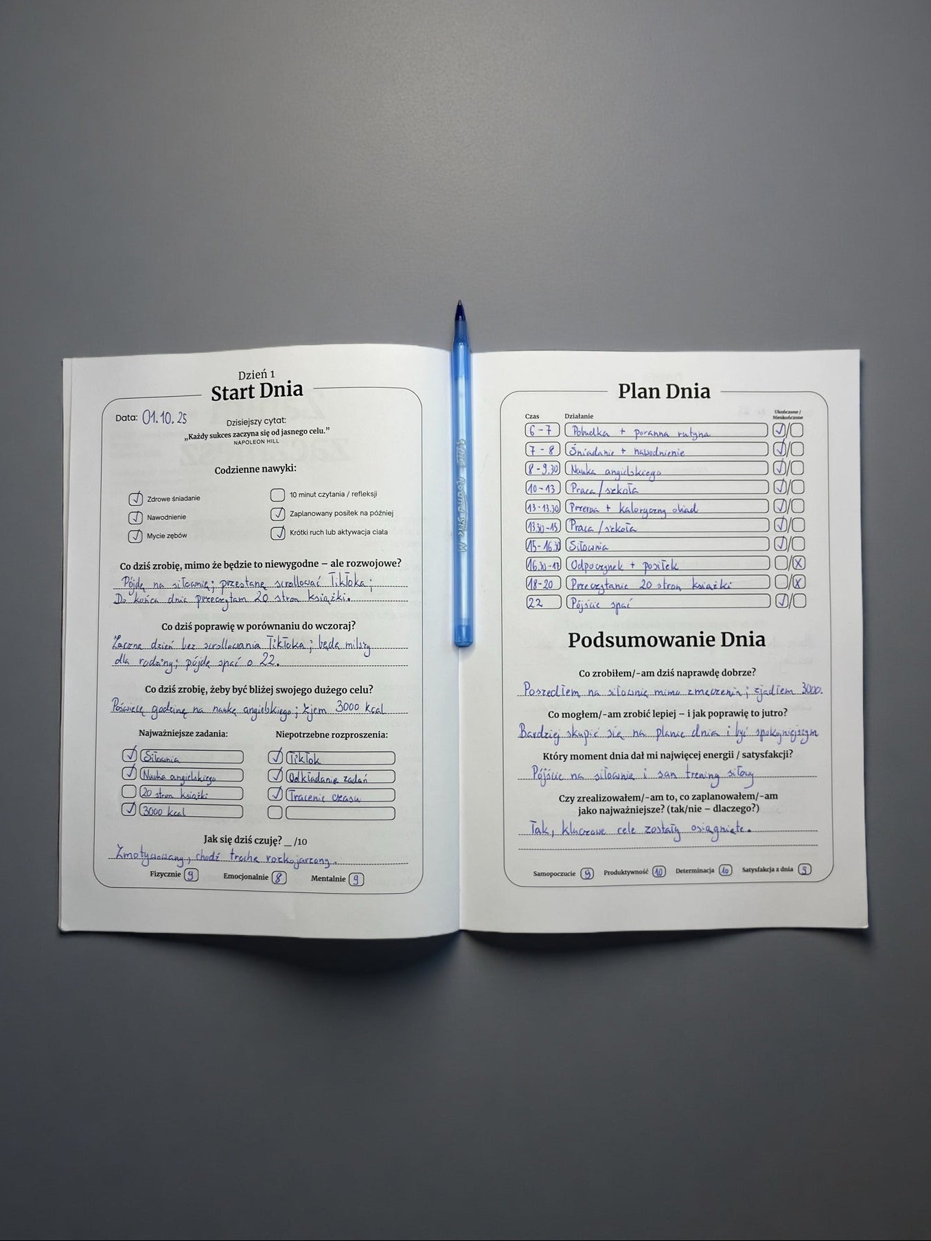 Ten dziennik prowadzi cię przez proces - od planowania dnia, po refleksję i rozwój.